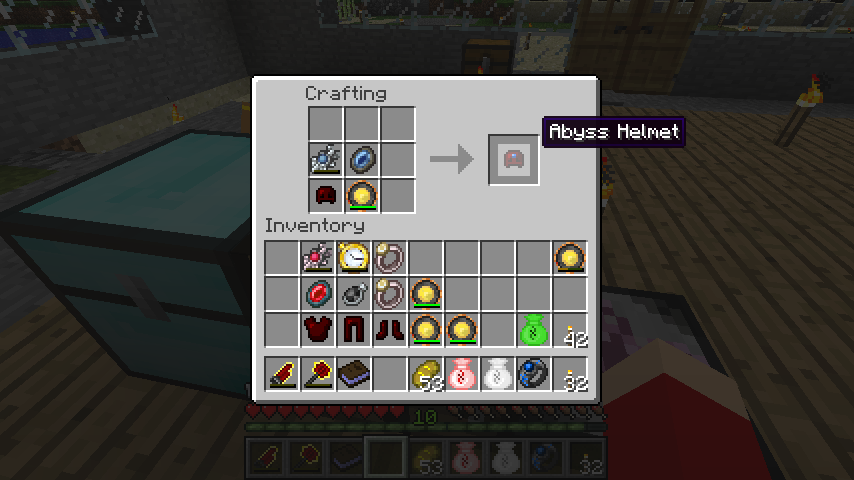 アビスヘルメット(Abyss Helmet)は湧水の祭器、魂の石、レッドマターヘルメット、満充電のクラインの星オメガ。
