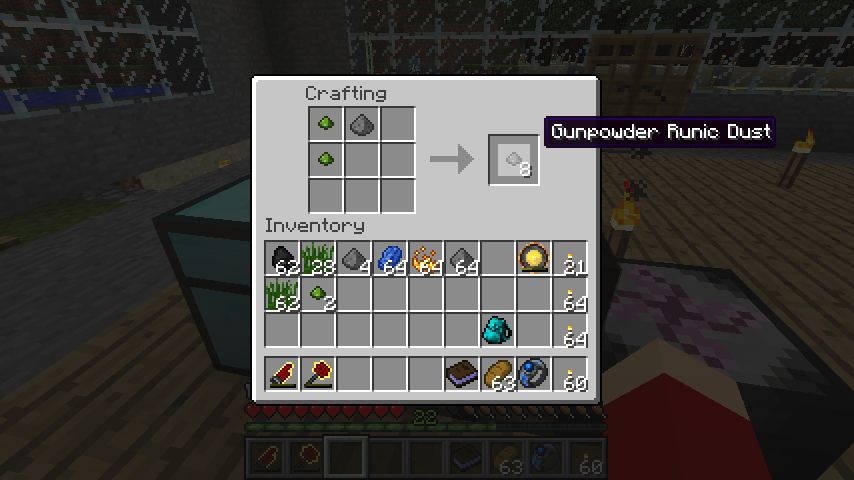 植物性ルーンダスト*2と火薬で火薬ルーンダスト(Gunpowder Runic Dust)*8。
