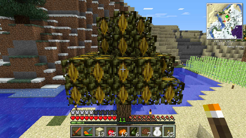 このようにXie's MODsを入れると、比較的単調だったバニラの植生が豊かなものに変化します。