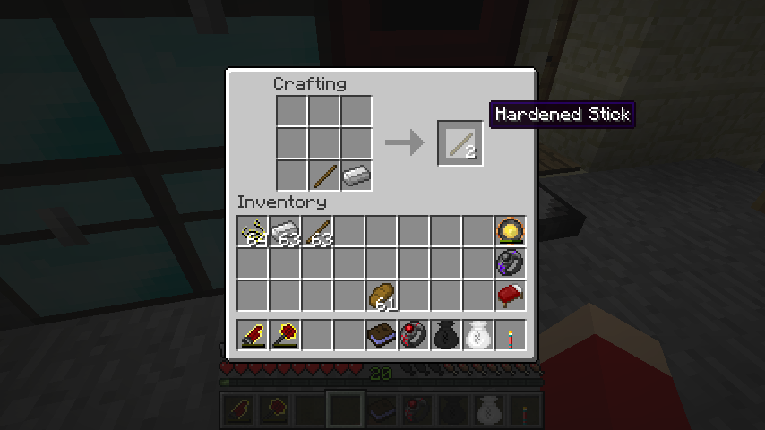 木の棒+鉄インゴットで鍛えた棒(Hardened Stick)*2。