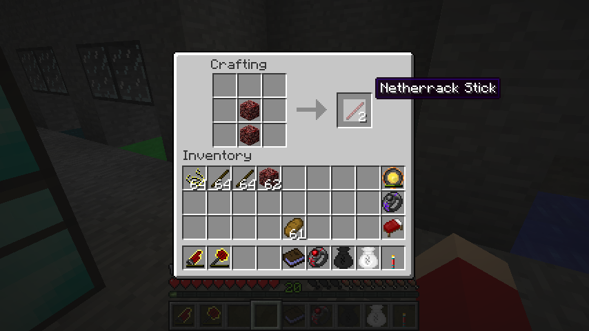 ネザーラック*2でネザーラック棒(Netherrack Stick)*2。
