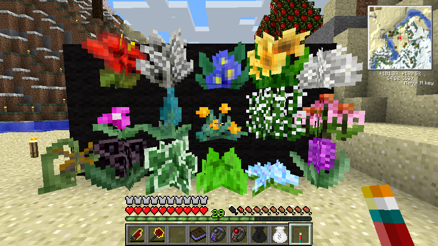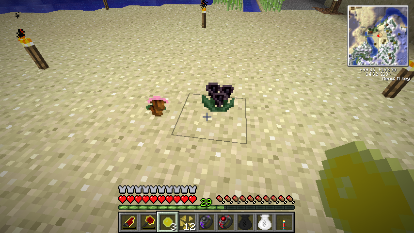まず本作を導入すると地形生成時に花が生えるはずなんですが、競合なのかなんなのか、何故か生成されませんでした。