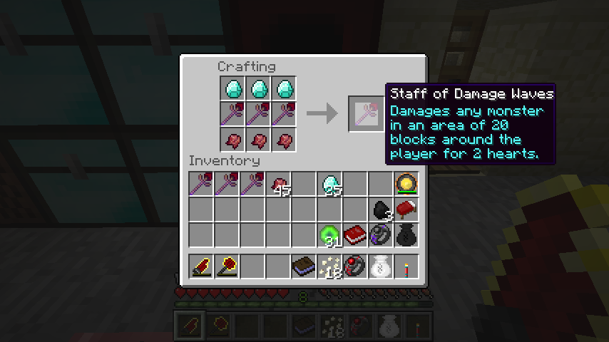 苦痛の杖*3、ダイヤモンド*3、発酵した蜘蛛の目*3で波動の杖(Staff of Damage Waves)。