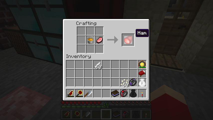 ハムを焼くと焼きハム(Cooked Ham)となり満腹度回復量は3。