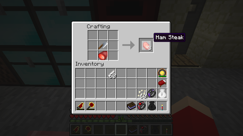 ハムステーキの満腹度回復量は3で、生のまま食べるくらいならとりあえず切っておくとよいでしょう。
