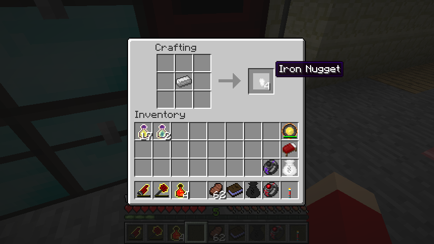まず鉄インゴットから鉄塊(Iron Nugget)*4のレシピが増えます。