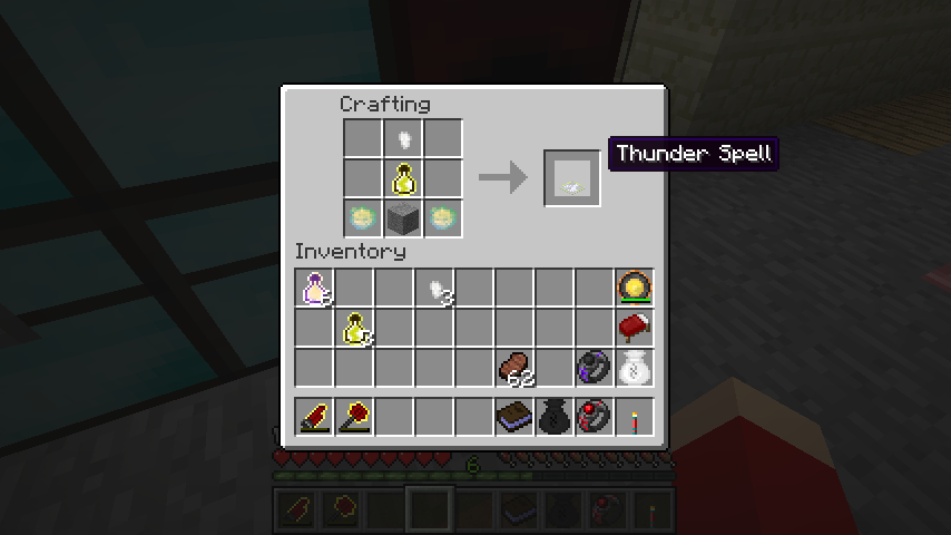 大経験値ボトル、ファイアチャージ、火薬で雷ボトル(Thunder Bottle)。