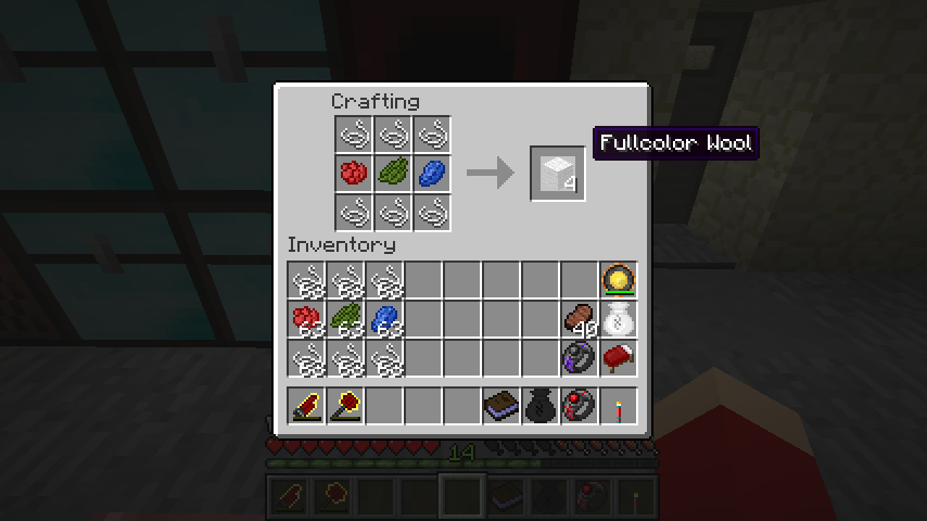 フルカラー羊毛からはフルカラー羊毛階段(Fullcolor Wool Stairs)、フルカラー羊毛半ブロック(Fullcolor Wool Multislab)、フルカラー羊毛カーペット(Fullcolor Wool Carpet)を作成可能です。